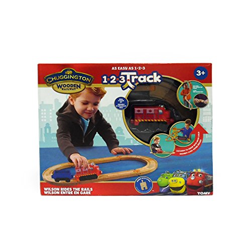 The Wilson Rides the Rales playset is the perfect starter set for little chuggineers! This starter set includes a loop of Chuggington 1-2-3 Track and a wooden Wilson engine. Three feet of track connected with hinges flex up, down, and rotate 360 degrees! 1-2-3 Track playsets enable children to play independently at a young age, without needing assistance from parents to create a layout. Feature playsets also include classic wooden track pieces to create more complicated layouts, allowing the playsets to grow with children as they develop more advanced skills.Feature