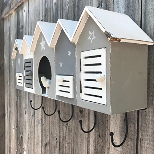 The Stockbridge Bird House Coat Rack, 5 Hooks, Handcrafted of MDF Wood and Metal, Approximately 2 Ft Wide, By Whole House Worlds