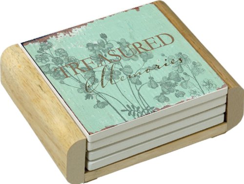 - Coasters are natural stoneware with decorative transfer print