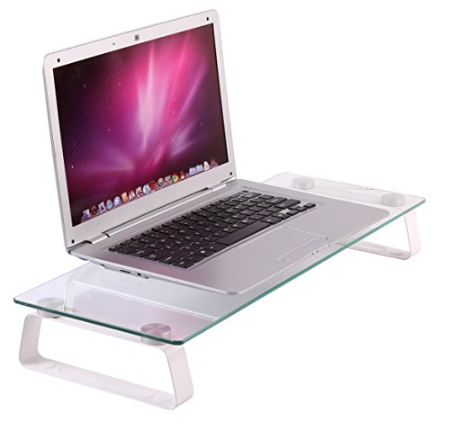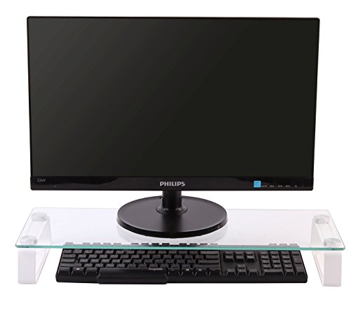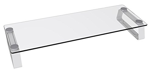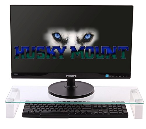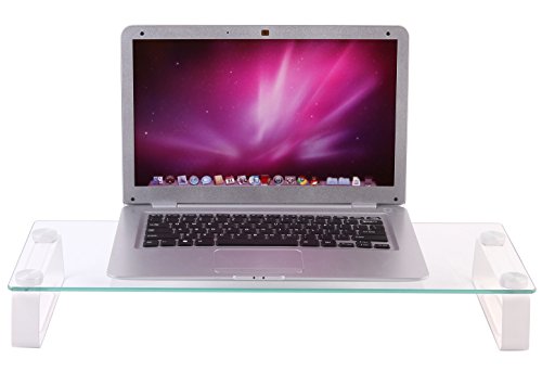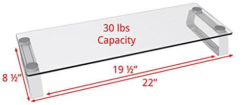 Husky Mount Computer Monitor Riser Stand Elegant Design 22" X 8 1/4" Clear Tempered Glass Laptop TV Stand 3" Height