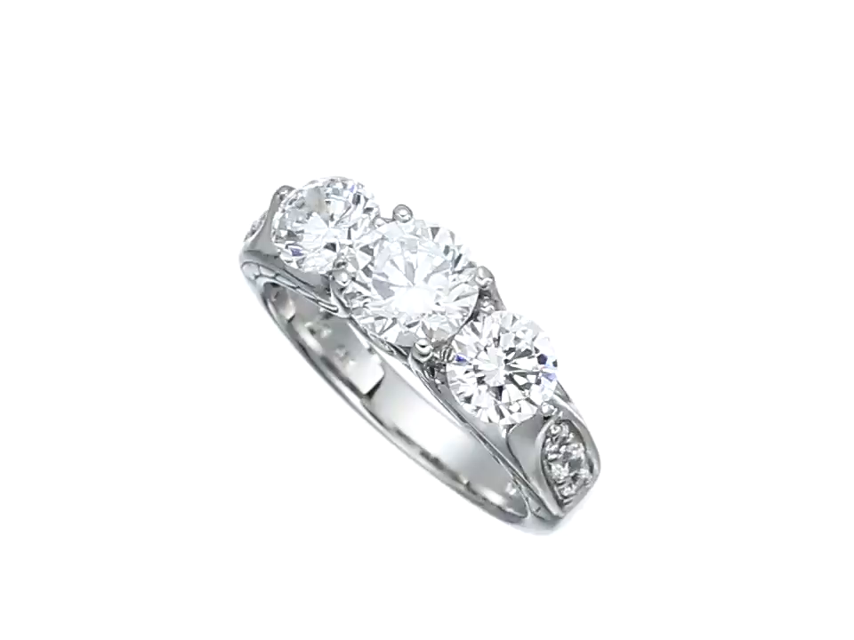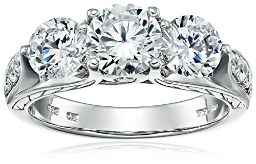 Sterling Silver White Cubic Zirconia 3-Stone Ring, Size 7