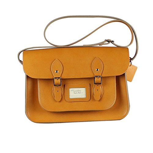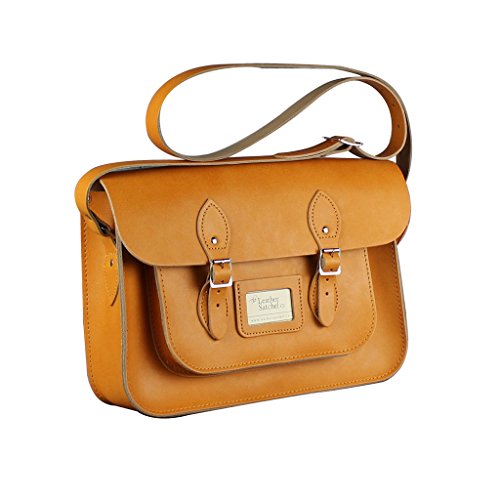 -. Title : Genuine Leather 14 Inch Wide Messenger Satchel Bag with Straps for Laptops, Macs, iPads and Tablets