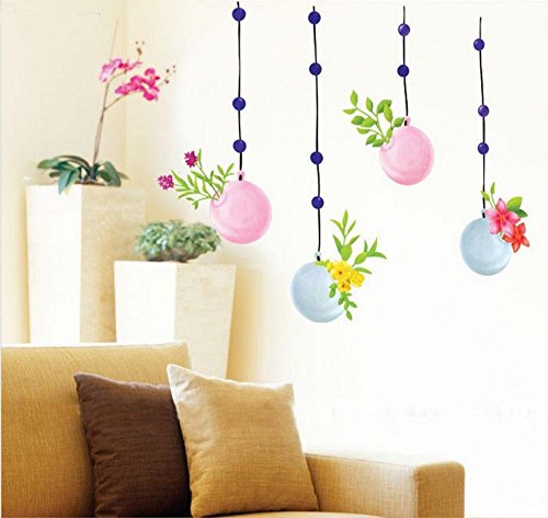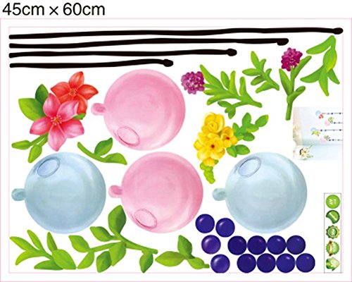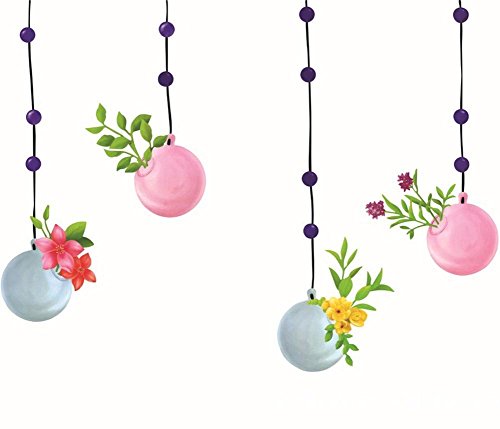 BIBITIME 12 Purple Polk Dot 4 Branch Hanging Balloon Wall Decals Green Vines Decor with Flowers Vinyl Sticker for Nursery Kids Rooms