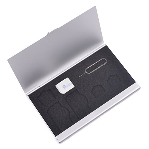 SCStyle SIM card Hard Aluminium Case Holder for Regular/Micro/Nano SIM & Apple iPhone/iPad Tray Eject Pin (Silver)