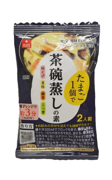 | 桜エビ、貝柱、椎茸、三つ葉入りの茶碗蒸しの素。出汁の旨味にこだわった、できたての味をお楽しみいただけます。お好みの具材を加えてもOK!!1食で2人前分です。 |