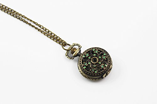 SEWOR앤틱 풍넥크리스 시계 레트로 넥크리스 회중 시계 브론즈 녹색의 화C191