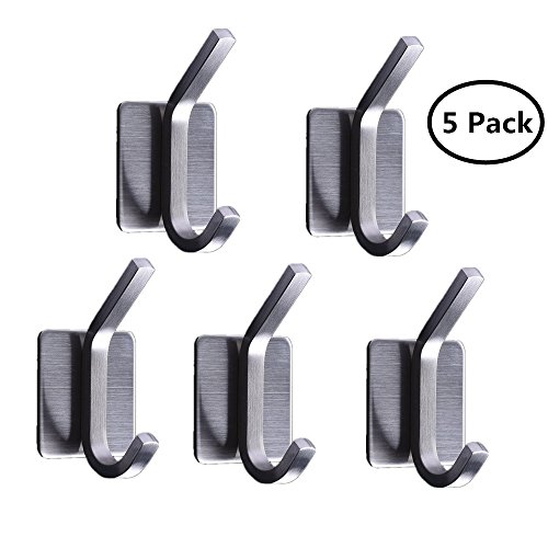 Wall Coat Hooks MerryMore Wall Mounted 3M Self Adhesive Brushed SUS 304 Stainless Steel Bathroom Robe Towel Hooks (5 Pack)