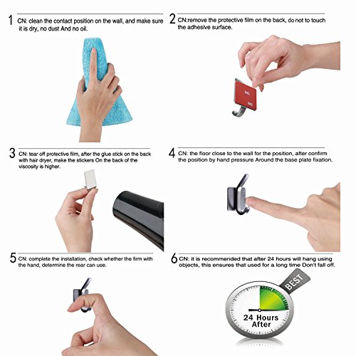 - Easy to install: Just peel off the protective layer on the back of the hooks, stick the hook and press for a moment. Then you will see they work perfectly! Notice: Better to hang your coats or accessories after 24 hours later.