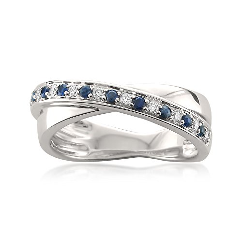 -. Title : 14k White Gold Round Diamond & Blue Sapphire Infinity Band Ring (1/4 cttw, I-J, I1-I2)