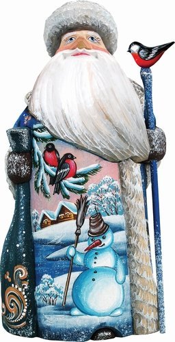 G. Debrekht Happy Snowman Santa Hand-Painted Wood Carving