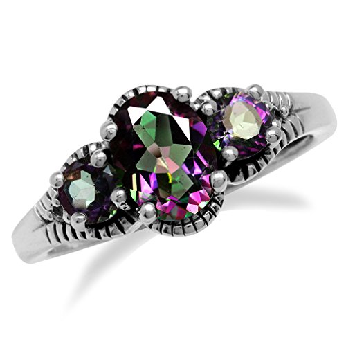 -. Title : 1.34ct. 3-Stone Mystic Fire Topaz 925 Sterling Silver w/Antique Finishing Ring