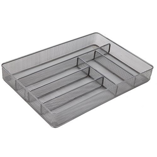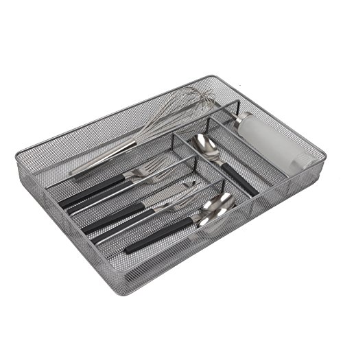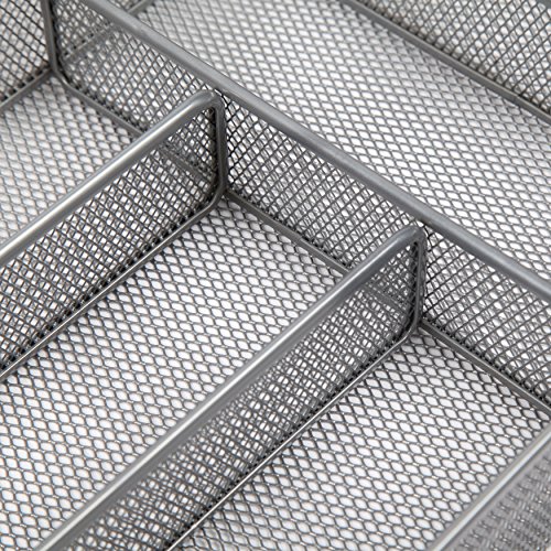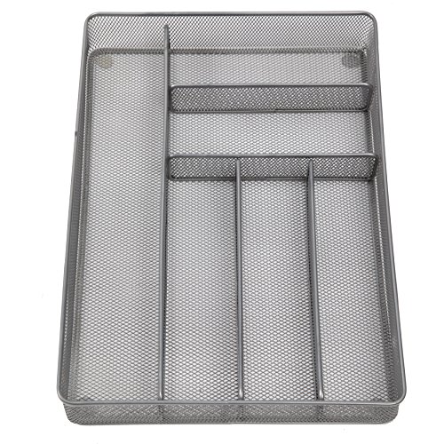 Finnhomy 6-Compartment Mesh Utensil Tray Kitchen Cutlery Drawer Organizer Silverware Storage Tray, Silver