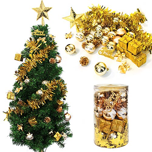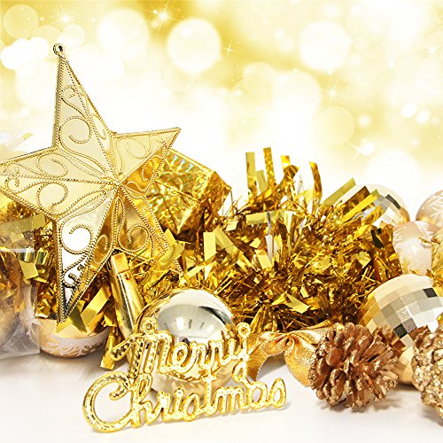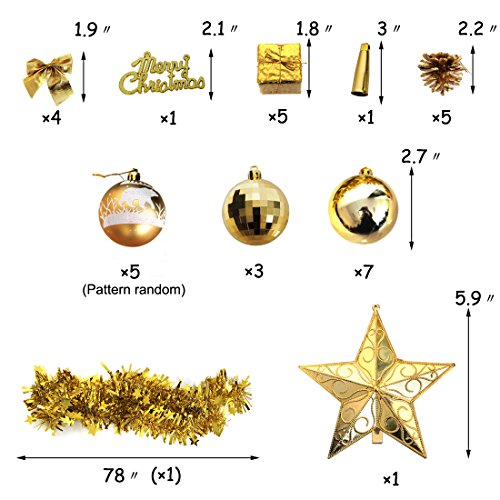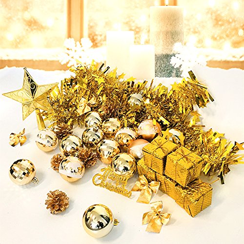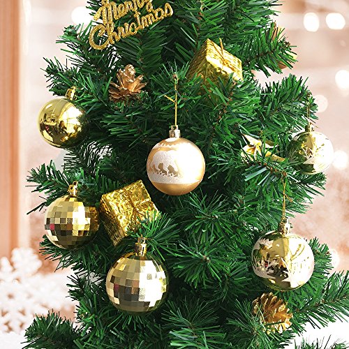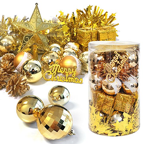 32ct Christmas Ball Assorted Pendant Shatterproof Ball Ornament Set Seasonal Decorations with Reusable Hand-help Gift Boxes Ideal for Xmas, Holiday and Party(32ct, Gold)