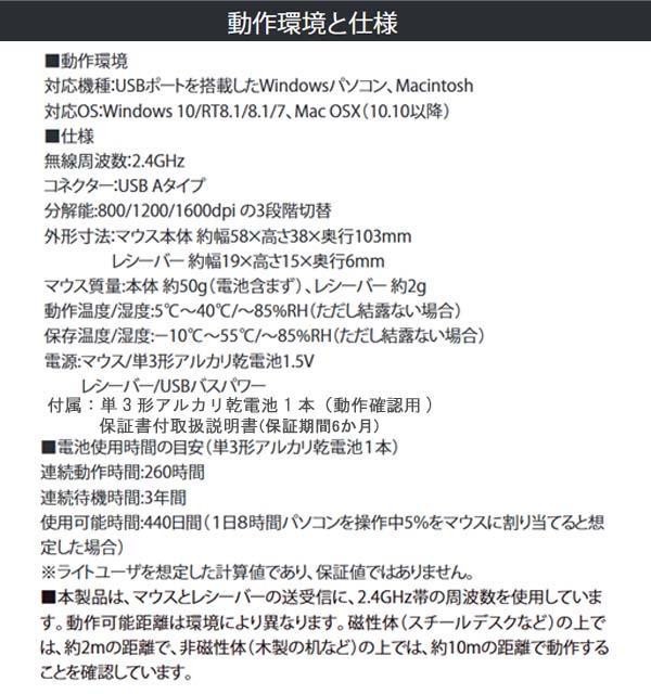 ブルーLEDセンサー搭載で、マウスパッドを使わずに様々な場所でスムーズかつ正確に操作できます。ワイヤレスだからデスクすっきり、携帯にも便利です。