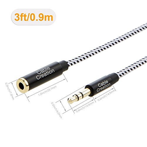 Specifications Side 1: 3.5mm Stereo Male Gold Plated Shell Side 2: 3.5mm Stereo Female Gold Plated Cable: TPE with Black and White braided Cable Length:0.91 Meter, Approximately 3ft