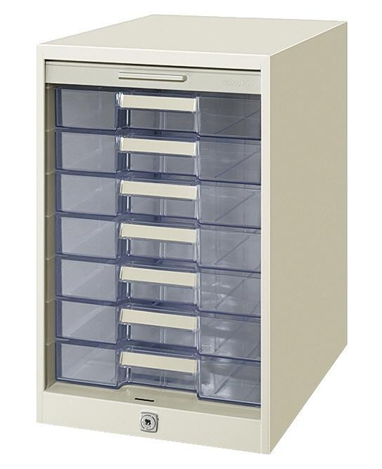 | 施錠管理ができ、個人情報の漏えいを防ぐ透明引出しタイプ♪ |