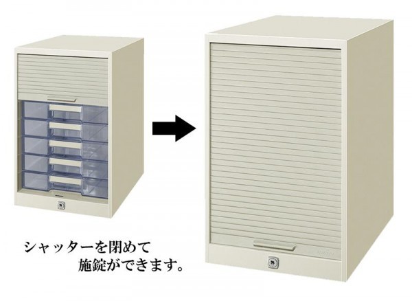 | 素材・材質 | 本体:スチール(焼付塗装仕上げ)、シャッター:ABS、引出:R-PS |