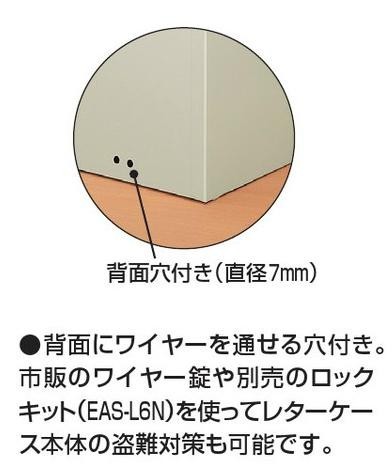 シャッターを閉めて手軽に施錠可能。書類の管理や保護に役立ち、個人情報などの漏えい対策にも最適です。背面にワイヤーを通せる穴付き!! |