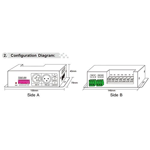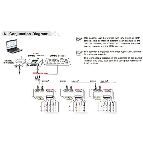 LEDENET 4CH x 6A DMX-PWM CV Decoder Constant Voltage Driver Convert DMX512 Digital Signal to PWM Signal Controller Equipped with DMC Standard XRL-3, RJ45, Green Teminal Interface