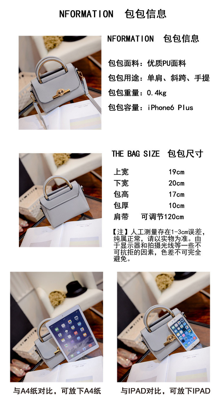 尺寸:上宽19cm下宽20cm包高17cm包厚10cm肩带可调节120cm
