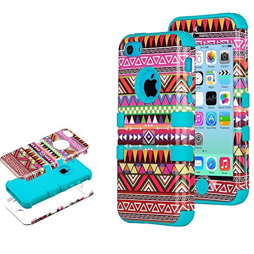 iPhone 5C Case ,WONFAST® 3 in 1 Shield Series 3 Layers Heavy Duty Armor Hybrid Shock Armor Defender Shockproof Dirtproof Impact Tribal PC + Silicone Defender Protective Case Covers (Hard Plastic with Soft Silicone) for Apple iPhone 5C (tribal-green)
