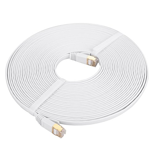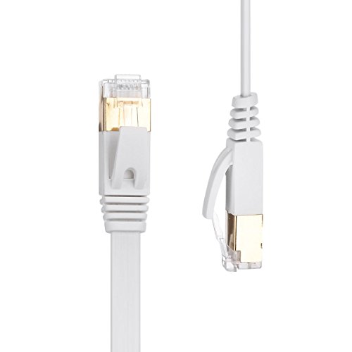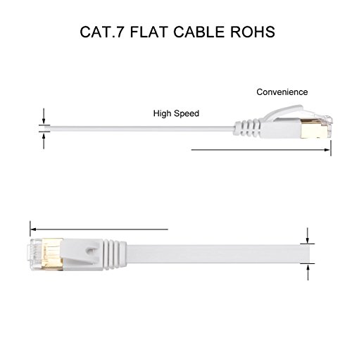 ENGINEERED TO LAST - Flexible Cat 7 cable with sturdy construction has connectors with molded strain relief and for frequent unplugging and durability. The combination of gold-plated connectors, bare copper conductors, and aluminum MYLAR foil shielded provides durability, error-free data transmission, against EMI/RFI Interference.
