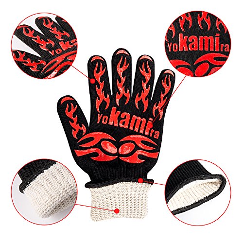 - 100% Satisfaction Guarantee - If the item damaged when you received, please contact us, we will replace it for FREE. If you're not 100% satisfied with our Yokamira heat resistant grilling cooking gloves, we will refund your money.
