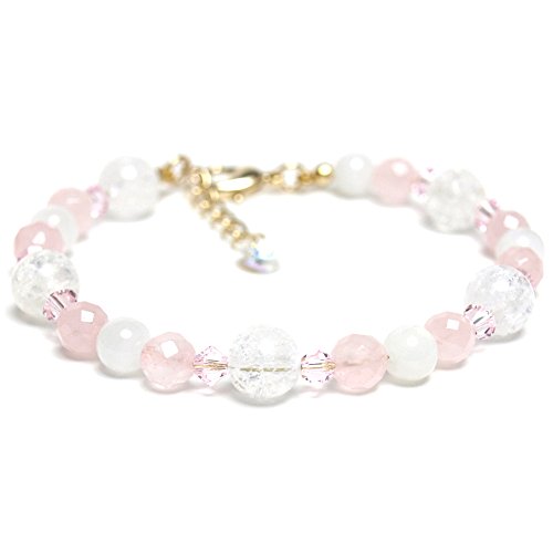 -. Feature : 【一部デザインが変更になりました】ブルームーンストーン6mm、クラック水晶8mm、ローズクォーツ6mm(64面カット)、スワロフスキービーズ、アジャスター、留め具(金メッキ)。 / 約3.0センチのアジャスターで調節できるので、スタイルに合わせて自由に調節して頂けます。手首サイズは約15~17cmの間で調節可能です。 / 【ご注意】天然石を使用しているため、個々の色合いや形(サイズ感)、模様などが画像と若干違う場合がございます。 / 【1年間保障サービス】詳しくは http://fetti.jp/faq をご覧ください。 / さざれ水晶のサービスは終了いたしました。