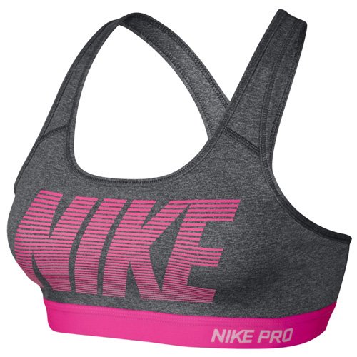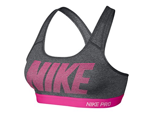 Nike Womens Pro Classic Padded Graphic Sports Bra Dark Grey/Hyper Pink 726934-022 Size Medium