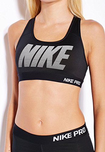 Nike Womens Pro Classic Padded Graphic Sports Bra Black/White 726934-010 Size Medium