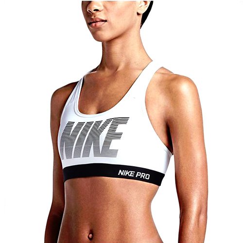 Nike Womens Pro Classic Padded Graphic Sports Bra White/Black 726934-100 Size X-Small