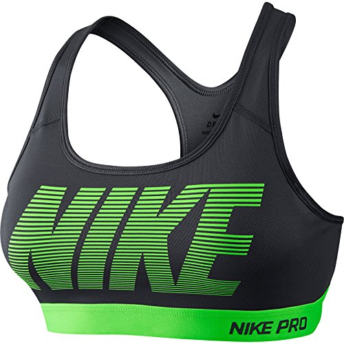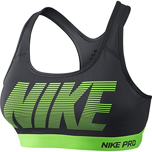 Nike Womens Pro Classic Padded Graphic Sports Bra Dark Grey/Voltage Green 726934-021 Size Large