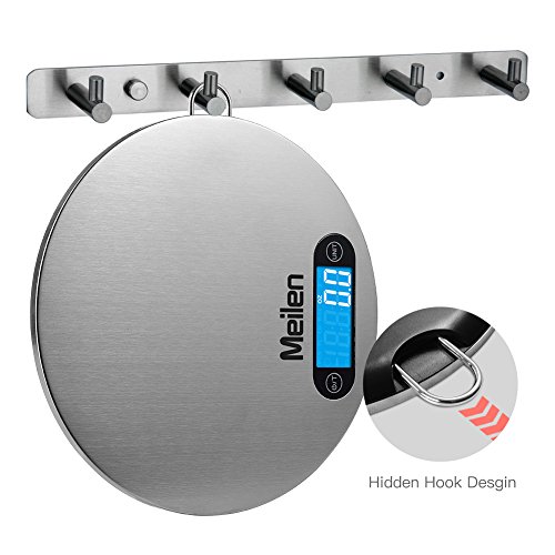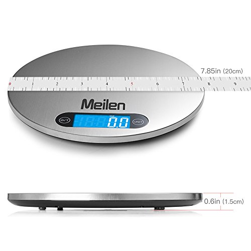Digital Kitchen Food Weight Scale w/ Hanger ,Touch Button,High Precision w/ Back-lit LCD Display and Tare Function ,Small Round Stainless Steel Platform w/ Units oz, lb,g,ml (0.1 oz,11lb/5kg)(Silver)