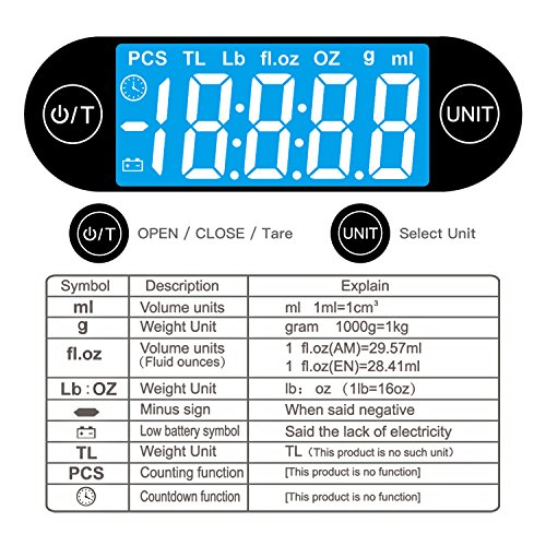- 【MULTI-FUNCTION】Quickly unit conversion between ml, g, oz; Features a crystal clear LCD screen by bright blue back light, which can be read on the day light; Perfect for baking, cooking, portion control, postage, reloading and jewelry.