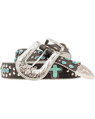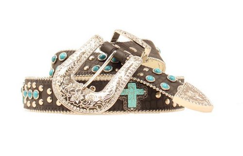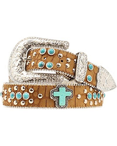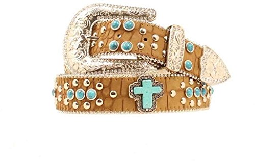 Studio : Blazin Roxx Publisher : Blazin Roxx Binding : Apparel Product Description Two things cowgirls love - bling belts and a great bargain Well, Cowgirl, you'll find both with this Blazin Roxx belt Light brown faux leather croc print belt encrusted with turquoise beads and studding. Fancy turquoise cross concho accents. Ladies' belt measures 1 1/2" wide. Sizes: S(28-30), M(32-34), L(36-38), XL(40-42). Imported. 0