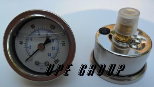 NEW STAINLESS STEEL LIQUID FILLED PRESSURE GAUGE WOG WATER OIL GAS 0 to 200 PSI CENTER BACK MOUNT 0-200 1/8" NPT 1.5" FACE DIAL FOR COMPRESSOR HYDRAULIC AIR TANK PRESSURE WASHER