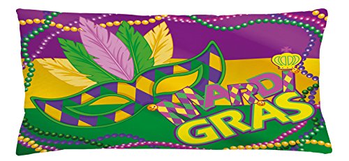 Mardi Gras Throw Pillow Cushion Cover by Ambesonne, Colorful Bands with Vivid Beads Feathers Ma...