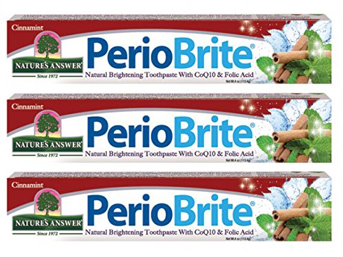 PerioBrite, a low abrasive toothpaste, does more than clean teeth - it supports periodontal health. Dentist formulated Periobrite contains soothing herbs well-known for their cleansing action, while CoQ10, Folic Acid, Oregano, Cinnamon and Clove promote tissue and gum health. As part of an oral health program, PerioBrite naturally whitens teeth while leaving your breath fresh and clean, energizing your whole mouth with a cool, sparkling minty-fresh sensation. For best results, use with PerioCleanse, PerioWash and PerioRub.Feature