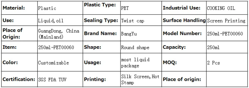 Model Number: 250ml-PET00060