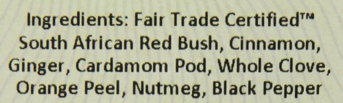 -. Feature : 16 Ounce of Full Leaf Tea in a Re-sealable Paper & Kraft Stand Up Pouch with Aluminum Foil Lining to Maintain Freshness / Fair Trade Certified South African Rooibos*, Cinnamon*, Ginger*, Cardamom Pods*, Whole Cloves*, Orange Peels*, Nutmeg*, Black Pepper*. * Certified Organic / Fair Trade, Kosher, Vegan & GMO-free, Gluten & Allergen-Free / Naturally Caffeine Free & High in Antioxidants: Good for Relaxation & Stress-Relief: Anti-Inflammatory & Good for Digestion. / Bulk Loose Leaf Tea