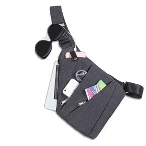 - EXCLUSIVE FEATURES: Water, scratch, and rip resistance. Additional accessory pocket located inside the bag. One 8fl oz water bottle compartment. Key holder component attached to the strap. Shoulder strap is adjustable. Key holder component attached to the strap. Can expand and compress and fold. Music listeners friendly.