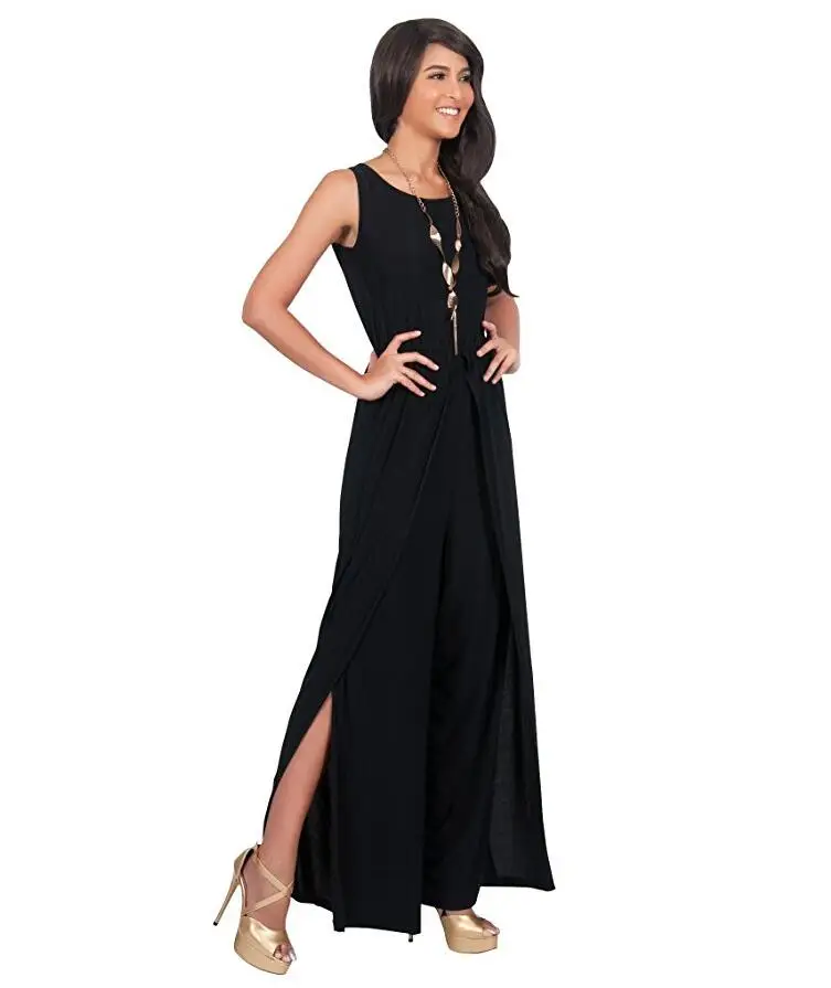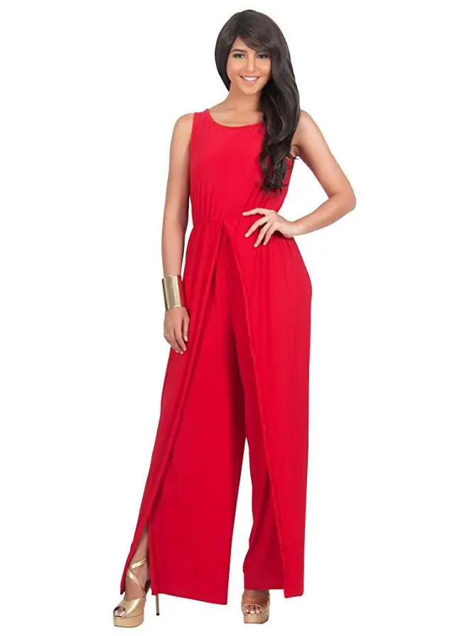 Feature:Long Pants, Sleeveless, Wide Leg, Split
