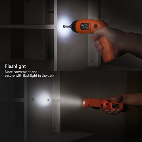 Tacklife SDH13DC Advanced Cordless Screwdriver 3.6-Volt 2000mAh MAX Torque 4N.m 3-Position Rechargeable with 31 Screwdriver Bits in Case,4 LED Light,Flashlight,USB Charging for Around House Small Jobs