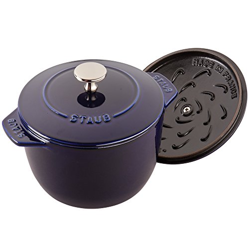 Staub's 1.5 quart Cast Iron Petite French Oven boasts the benefits of a full-size cocotte in a compact size. Get fluffy rice, tender grains and creamy oatmeal thanks to Staub's signature new lid. Staub's latest innovation, the Chistera drop-structure lid, has solved the challenge of curved lids—they limit moisture to sides—by ensuring continuous condensation throughout. Unlike countertop rice cookers, Staub's Petite French Oven can be transported from the stovetop to the table. No need for serving bowls; these charming cocottes take care of both cooking and plating. Rice has never been so easy to make.Feature