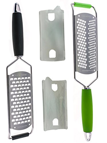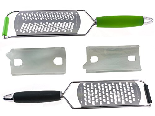 Stainless Steel Handheld Cheese and Lemon Grater and Zester Set of 2, Green and Black