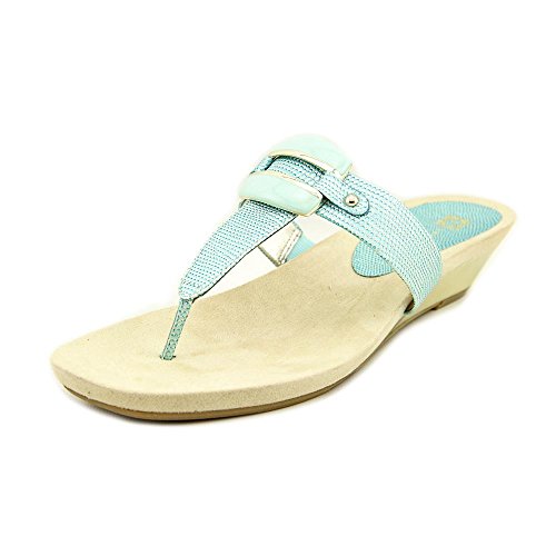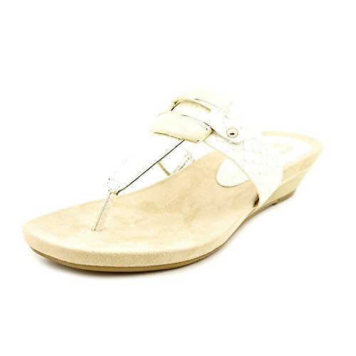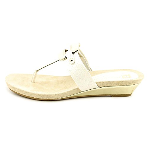 Get on the go with these timeless Anne Klein wedges. AK Anne Klein iFlex Technology allows for a flexible fit that can bend up to 90 degrees. Polyurethane upper. Rolled thong post. Polished hardware decorates the vamp. Man-made lining. Metallic accent at the wedge. Man-made outsole. Heel Height: 1 in