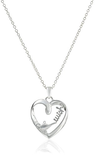 DISNEY STERLING SILVER OPEN HEART WITH "WISH" AND GENIE LAMP PENDANT NECKLACE, 18"
