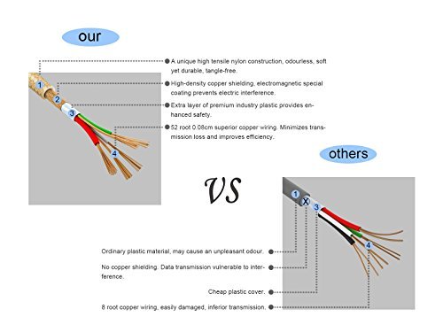[Strong Material] The cable is made of PVC premium fiber nylon material which makes these cables more durable and robust and tangle-free.
