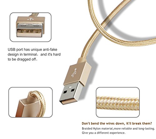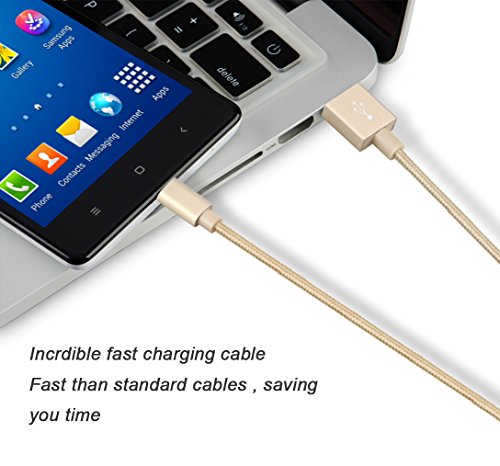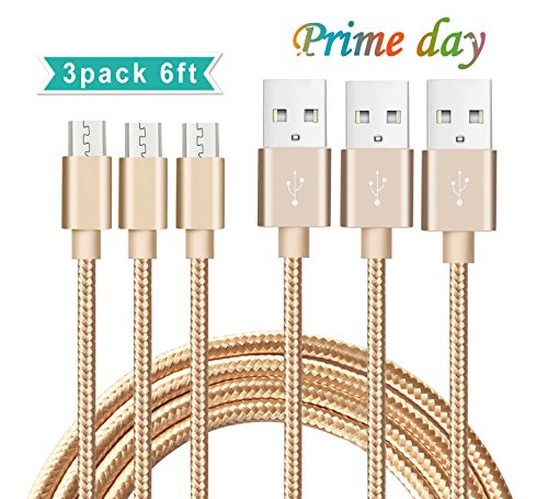 Micro USB Cable, BUDGET & GOOD [3-Pack] 6Ft Premium Nylon Braided High Speed Data Sync Charger Cord with Aluminum Shell for Android Samsung HTC Motorola LG Sony Blackberry and More (Gold)