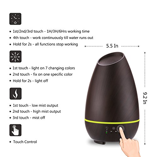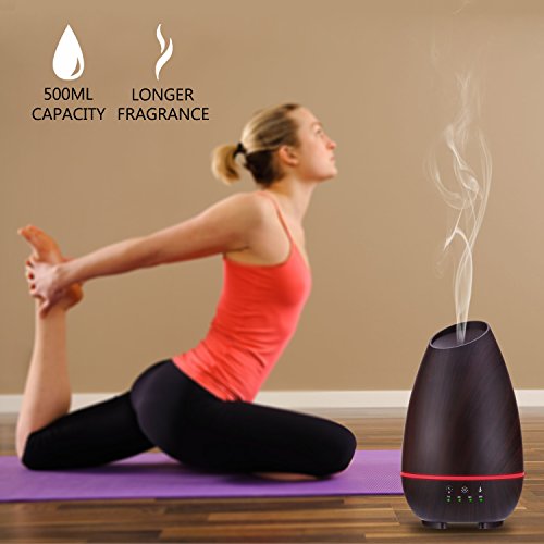 Aromatherapy Essential Oil Diffuser 500ml Aroma Diffusers Wood Grain Ultrasonic Cool Mist Humidifier with Touch Control Timer Adjustable Mist Waterless...